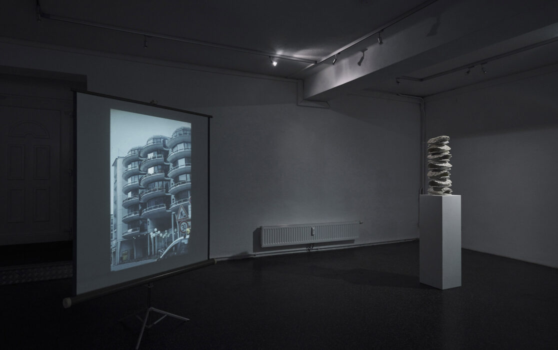 The ceramic Stacks were inspired by an oft-recounted anecdote by the mathematician Bertrand Russell, and a popular children's book by Dr. Seuss, but for me, they found their most apt counterpart in this exhibition I made with the photographer Frank Stürmer. Frank's slideshows of architectural photographs of residential facades in Berlin brought out a social dimension in the stacks, which in turn, provided the photographs with an element of partisanship. Together, they evoked the contemporaneous struggle over housing in the city, in which many working class groups have come together to fight the wave of real estate speculation which holds thousands of apartments empty while many people remain homeless and average rent rises sharply. Frank and I created a number of posters in support of the protests as well.